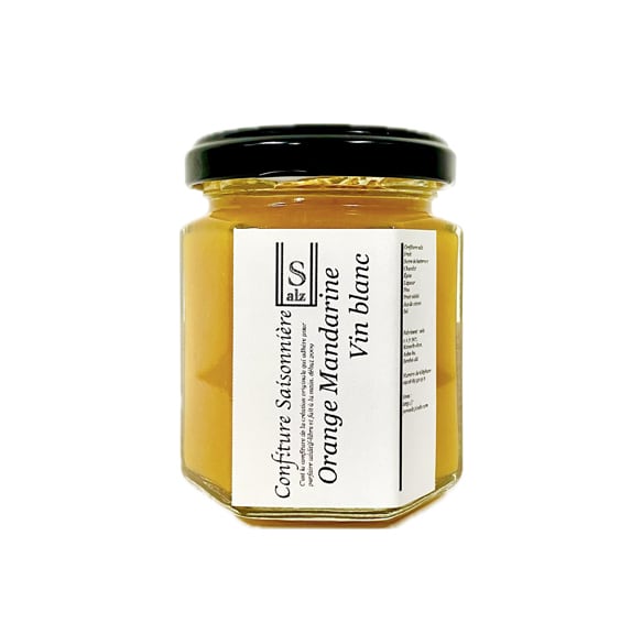 和歌山県産の防腐剤、ワックス不使用のみかんを、ほぼ丸ごとたっぷりの白ワインで煮たフルーティなソースのようなジャム。みかんの強い味わいの後に白ワインの風味の余韻が続きます。